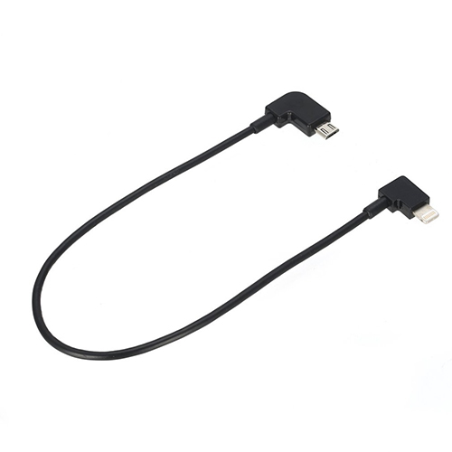 Verbind uw iPhone, iPod of iPad met een drone afstandsbediening met micro USB aansluiting. De kabel met een lengte van ongeveer 30 centimeter heeft twee haakse stekkers. Deze kabel is alleen geschikt voor data-overdracht, niet voor opladen.