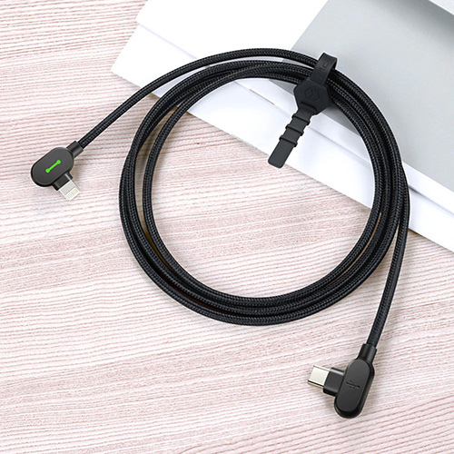 De krachtige 3 ampère Lightning naar USB-C kabel van Mcdodo laadt uw iPhone, iPod of iPad razendsnel op. De Lightning en USB-C stekker hebben beiden een bocht van 90º.