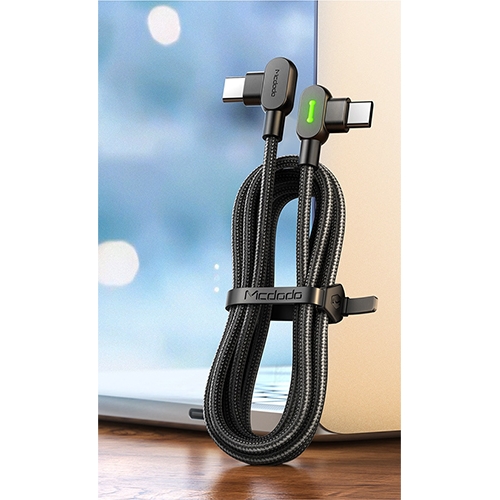 De krachtige 3 ampère USB-C naar USB-C kabel van Mcdodo laadt uw apparaten razendsnel op. De stekkers hebben beiden een bocht van 90º. De unieke USB aansluiting kan zowel naar links als naar rechts geplaatst worden.
