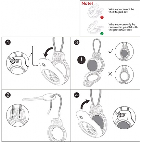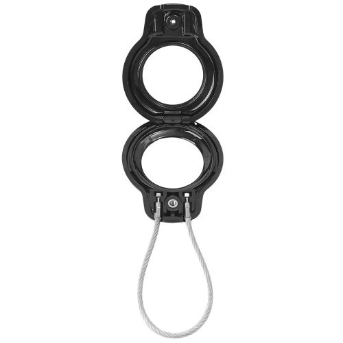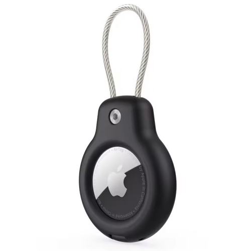 Deze robuuste houder is op maat gemaakt voor de Apple AirTag. De houder is voorzien van een gesloten lus die gemaakt is van RVS. De houder zelf is van dik kunststof en volledig gesloten dankzij twee kunststof kappen aan de voor- en achterkant.